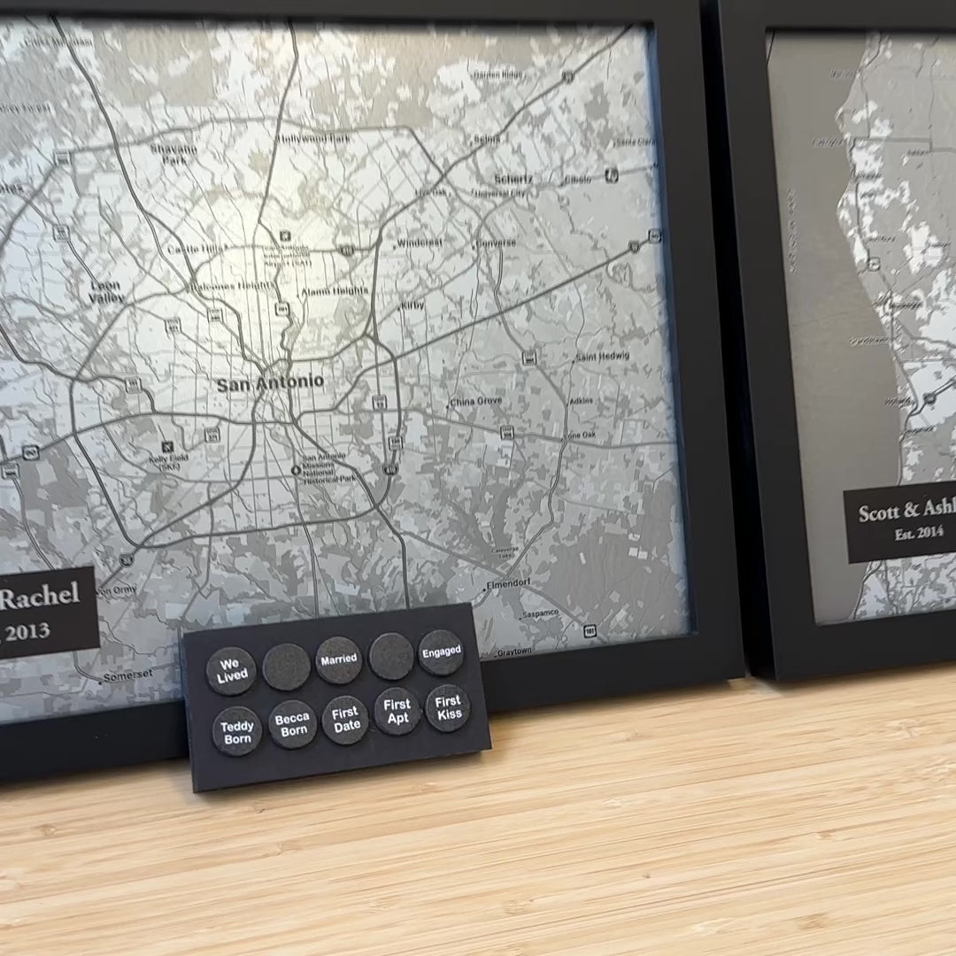 Aluminum map for the 10th wedding anniversary is a remarkable shared experience! This aluminum anniversary gift can be customized with any area on the map and comes with 10 magnet pins that can be personalized with cherished moments from your marriage journey together.